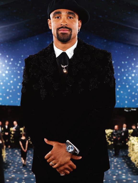 The 27-year-old Philadelphia Eagles quarterback and most valuable player of this past year’s Super Bowl won over fans with his selection of a black velvet suit from Burberry and a Breitling Navitimer B01 Chronograph 43 Ref. AB0138241C1A1. The blue dial and stainless steel case and bracelet case Breitling’s traditional craftsmanship, elevated design and high-precision engineering.