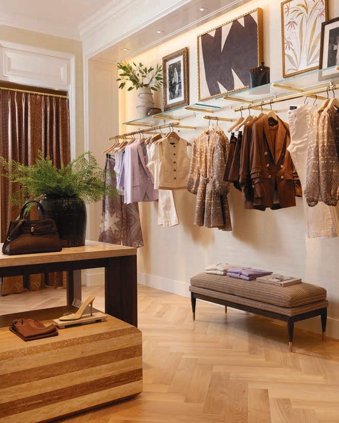 Opposite page: Veronica Swanson Beard (left) and Veronica Miele Beard (right) created Veronica Beard Jean, a denim-focused collection for every off-duty wardrobe look. This page: The Mall at Short Hills houses Veronica Beard’s first standalone store in New Jersey.