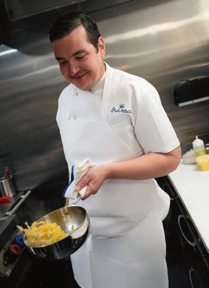 more,” he recalls. “I became an accountant, plumber, lawyer and florist, to name a few, overnight!” These diverse roles grounded Calapa’s leadership, and when he returned to Marea, another of Altamarea Group’s venues, in 2021, he balanced reverence with innovation. “I always respected Marea and its menu, and knew I’d keep the signatures and introduce new dishes that would become signatures too. Marea is the best stage in New York City—it’s perfect for me.”