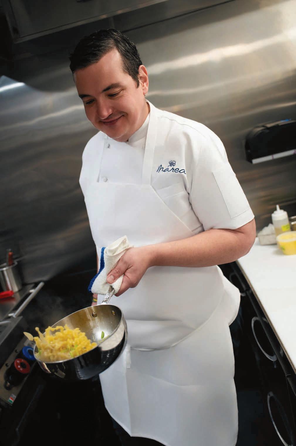Calapa at the helm in Marea’s kitchen, mastering the art of pasta.