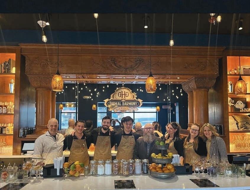 by mixologist and general manager Robby Seibert using Dismal Harmony’s spirits and liqueurs, all distilled on site. “We couldn’t have done this without him,” Bob says. “You cannot have a good cocktail bar without a good mixologist.”
