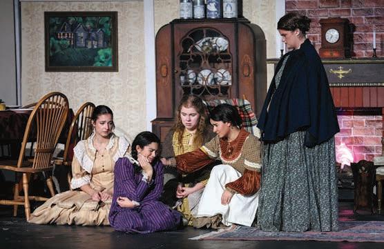 MHS Fall 2025 production of Little Women. From left: Helene Gringeri as Meg March, Layna Arvanites as Amy March, Olivia Montague as Beth March, Amelia Corcoran as Hannah, and Abby Higgins as Marmee.