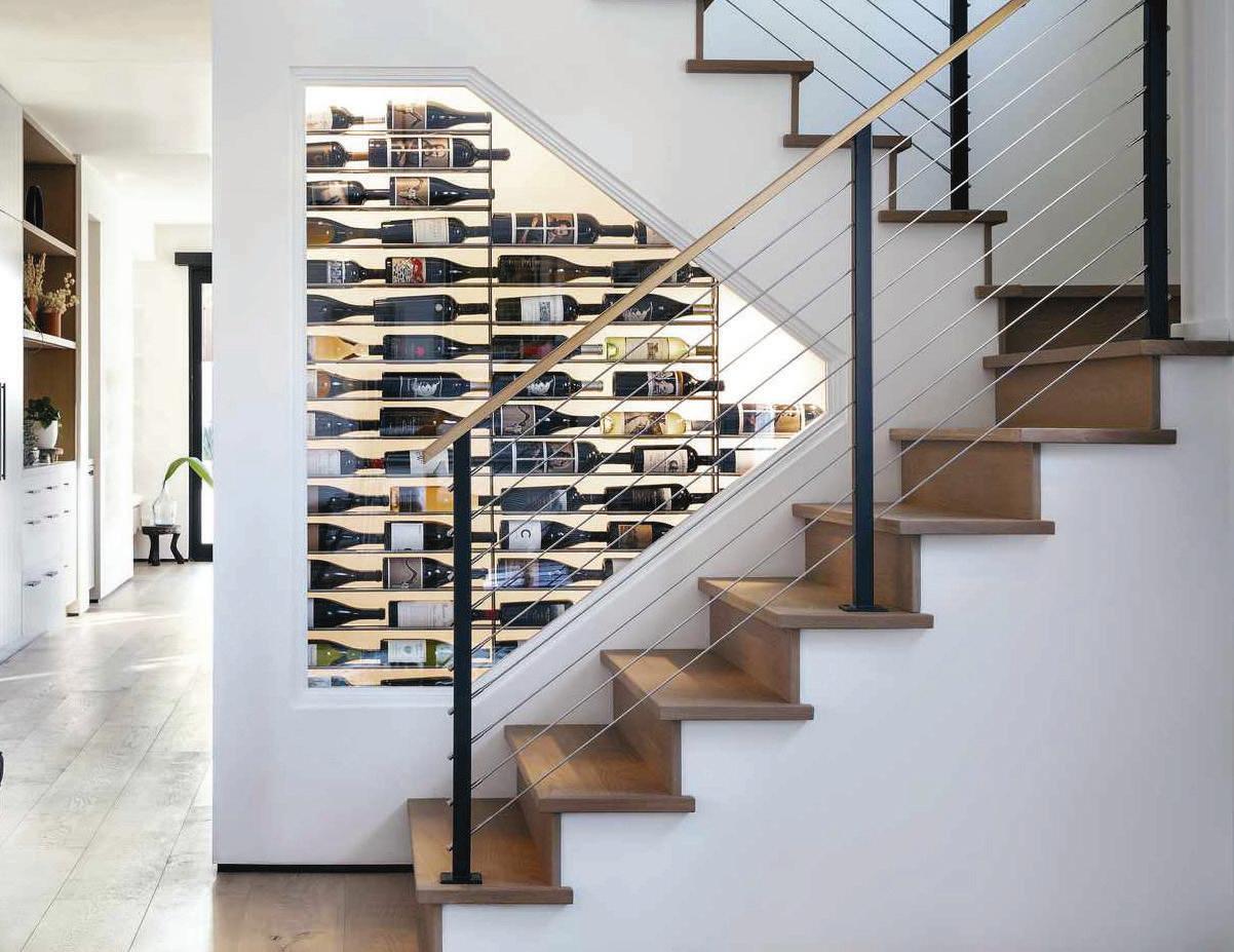 ORM FOLLOWS FUNCTION,” ARCHITECT LOUIS SULLIVAN famously said, and he might have added that style comes right on its heels. The wall attached to a staircase is usually small and strangely shaped. It has to be, for its function; triangle shapes, sloping lines and the silhouette of the stairs themselves command the feature. Sure, you could mask that strangeness and let it blend seamlessly into the design around it. (A beautiful accent table or some treasured family pictures do wonders here.) But why not lean into that form instead? Adding a built-in to a staircase turns that oddly shaped wall into an eye-catching, functional and stylish accent.
