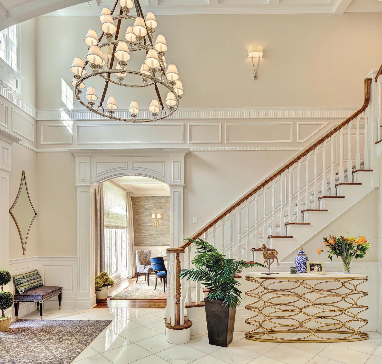 Where should your eye be drawn when you enter a room? The go-to answer used to be the accent wall, traditionally painted a different color than the rest of the room, but trends are shifting. “I find that we are doing more wall-applied moldings as accents as opposed to painted accent walls,” notes Laurie DiGiacomo of Laurie DiGiacomo Interiors in Ridgewood.
