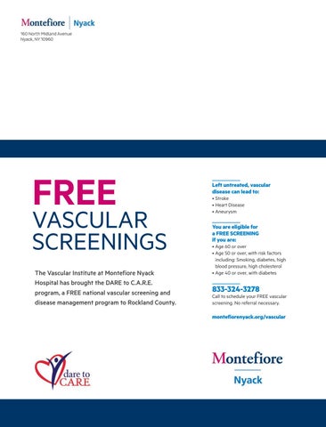 VASCULAR SCREENINGS The Vascular Institute at Montefiore Nyack Hospital has brought the DARE to C.A.R.E. program, a FREE national vascular screening and disease management program to Rockland County.