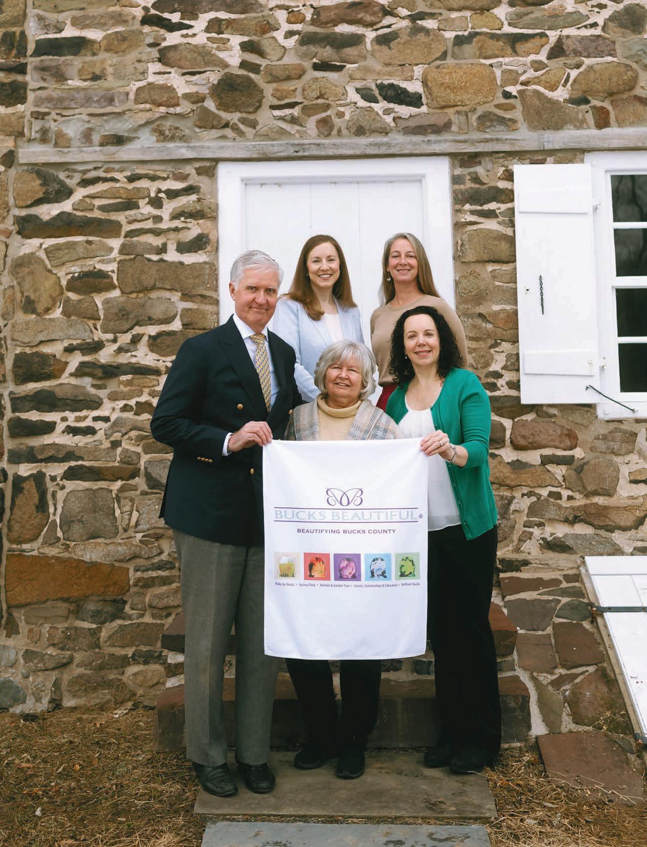 Upper Makefield Township Supervisor Elizabeth Thompson, Bucks Beautiful Board President Bryce Sanders, and Bucks Beautiful Executive Director Denise Sezack