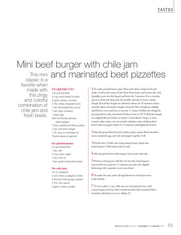 Mini beef burger with chile jam This mini and marinated beet pizzettes classic is a favorite when made with this zingy and colorful combination of chile jam and fresh beets.