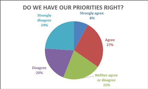 Council asked the community whether we have our priorities right in this Long Term Plan. A total of 75 submitters responded to the question with the following results: