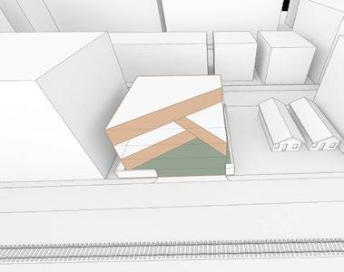 Basic volume with the permitted building outline, subtract diagonally to decrease building mass.
