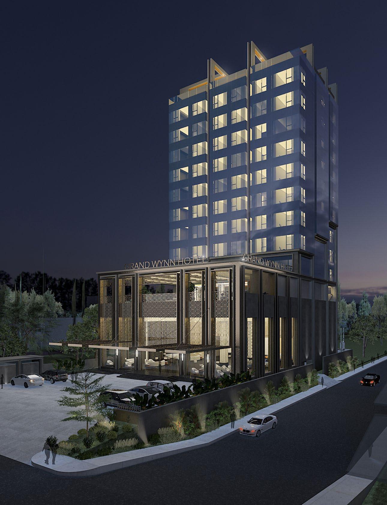 The Architectural design of 12 storyed hotel in total 81 guest rooms with other facilites suchas ballroom,meeting roms,swimming pool,gym,rooftop bar.Envision a design adroned with a glass curtin wall,strategically framing breakthing views. Vertical columns gracefully enveloping the facade area, serving as a exquisite design treatment.These architectural elements not only add a touch of elegance but also contributes to the structural intergrity of the building.Embrace the allure of a champagne metal screen,delicately adroning the structure for both shading and aesthectic purpose.This elegant addition not only provides a graeful shield from the sunrays but also adds a touch of sophistication to the architectural ensemble.