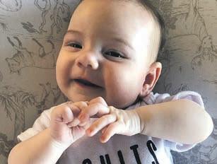 DOB 11/10/21 WEIGHT 9lb 11oz Cheeky monkey of Liam Grantham & Steph Miller (4 months old)