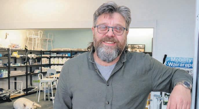 Steve (Spike) Taylor looks quite at home though, among the mobility scooters, walking frames, walking sticks, shower stools and health aids in his showroom at his Masterton store in Renall Street.
