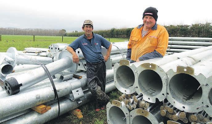 Pivot irrigators have taken o in Wairarapa. When Men Work caught up with Dave and Ian Mitch) Mitchelmore, they had just taken delivery of an irrigation system from South Africa. For a ahutara farm, it will stretch 600 metres out from the centre pivot covering some 1.2km in total farmland.