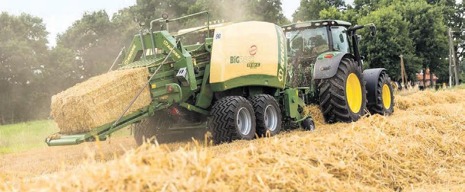 square or high-density) by overlapping to form a stable stack. Big square bales are normally stacked to a maximum of four layers high. High-density bales can be stacked ˛ at up to six layers high.