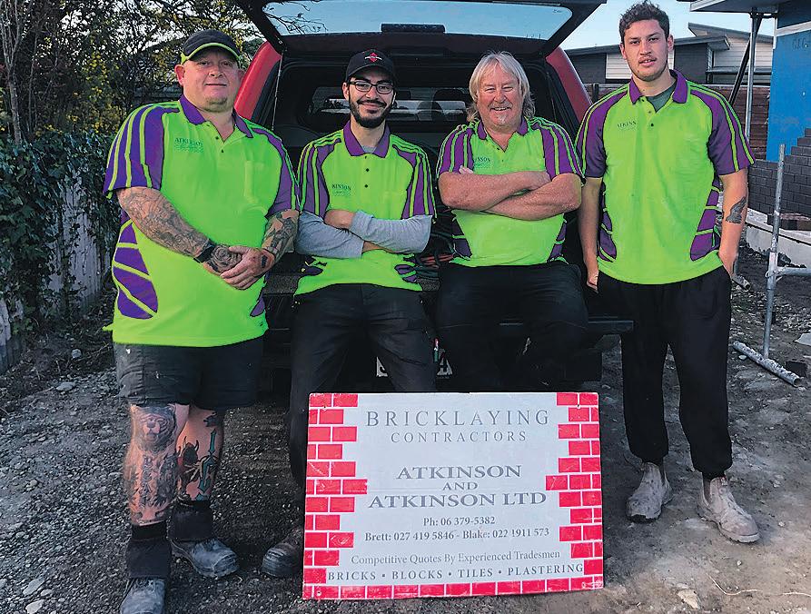 QUALITY BRICKLAYING • Bricks • Blocks • Tiles • Plastering WAIRARAPA-WIDE ATKINSON & ATKINSON BRICKLAYERS PHONE 027 419 5846 Pool Construction Ltd is proud to serve the local community, supporting local subcontractors and only stocking New Zealand-made spas. Visit our showroom to check out our range of Trueform spas. 151 High Street South, Carterton 06 379 8658 POOL CONSTRUCTION LTD pool builders since 1956 LOCALLY OWNED Relax after a tough game in a New Zealand-made SPA
