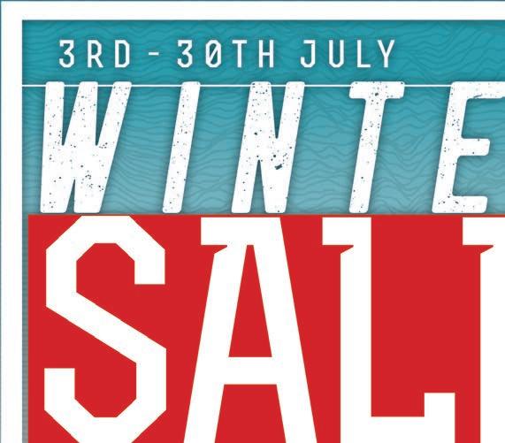 Wednesday, July 26, 2023 Wairarapa Midweek 43 Kids Trek Hoodie • Recycled polar eece • Hood with drawcord • Kangaroo pocket • Hidden zip pocket • Sizes 3-14 100% Waterproof • Fabric Rating: 24,000mm (max rating) • Full Garment Rating: 10,000mm (min rating) UltraLite 3-Layer Fabric Kids Buffalo Check Shirt • 210gsm eece • Button through front closure • Sizes 6-14 SALE $49.99 RRP $69.99 SAVE $20 NOW $149.99 RRP $219.99 NOW $49.99 RRP $79.99 NOW $69.99 RRP $89.99 NOW $69.99 RRP $89.99 NOW $149.99 RRP $219.99 Men's & Women’s Winter Fleece Tee & Sweatshirt Sweatshirt Tee SALE $19.99 RRP $39.99 SALE $19.99 RRP $29.99 Also available in Women’s Kid’s $89.99 SAVE $20 Cyclone Extreme Retro Check Jacket • 400gsm eece • Oxford shoulder saddle • Full zip entry • Drop tail SALE $119.99 RRP $179.99 SAVE $60 NEW COLOUR Kid’s $109.99 SAVE $40 Thunder Jacket • 3-layer waterproof breathable • Waterproof zips • Nylon ripstop bonded with tricot SALE $159.99 RRP $199.99 SAVE $40 Also available in Women’s Kid’s $74.99 SAVE $15 Thunder Pants • 3-layer waterproof breathable • Nylon ripstop bonded with tricot gauze SALE $109.99 RRP $149.99 SAVE $40 SALE ENDS 30th