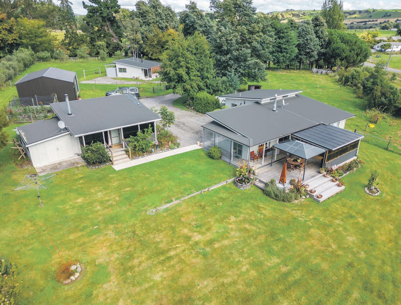 Nestled amidst idyllic farmland, this captivating bungalow presents a stunning setting on the outskirts of Greytown. Relocated in the 90s, this home underwent significant renovations, including re-piling, re-roofing, re-wiring and replumbing. The open-plan living areas with soaring ceilings exude a sense of space and charm, and the modernised kitchen seamlessly connects to the dining and living area. Escape to the expansive master bedroom, which features a walk-in robe and ensuite. The remaining two generous bedrooms offer ample space, built-in robes and share the convenience of a spacious family bathroom, equipped with both a shower and a separate bath. Insulation, two wood burners, an HRV system, and two heat pumps provide a pleasant and cosy atmosphere no matter the season. Expand your living space and enjoy year-round alfresco entertaining on the covered deck, extending the indoor to the outdoors. This property offers ample storage solutions including a double carport, double garage, workshop, and versatile hobbies or rumpus room. Garden sheds, a chicken coop, raised vegetable gardens, and an abundance of fruit and citrus trees complete this amazing package.