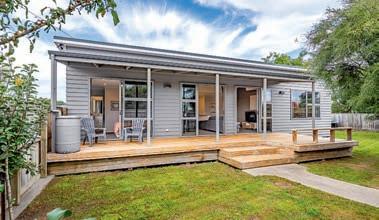 The attractive 1990s home features two double bedrooms with built in wardrobes, modern bathroom and separate laundry. The contemporary kitchen flows to open plan dining and living with a wood burner providing cosy winter comfort.