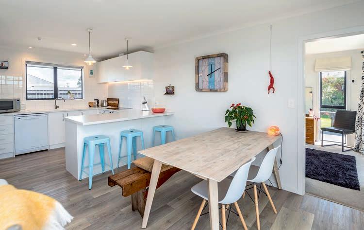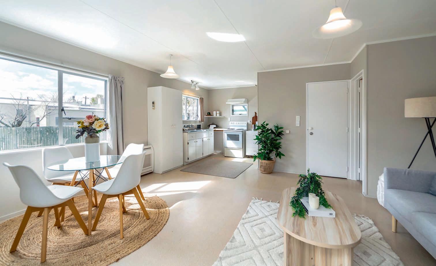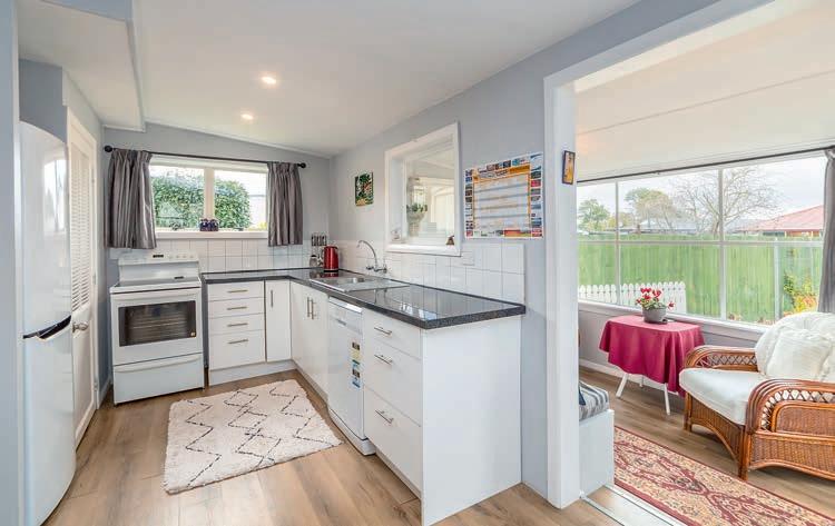 character windows provide natural light, while the lovely restful tones enhance your mood. A generous sized living area flows easily through to the separate kitchen which combines the dining area. There is a large laundry, plus a modernised bathroom with separate toilet. All year comfort is provided courtesy of a heat pump assisted by an HRV system. Insulated above and below, with a healthy homes