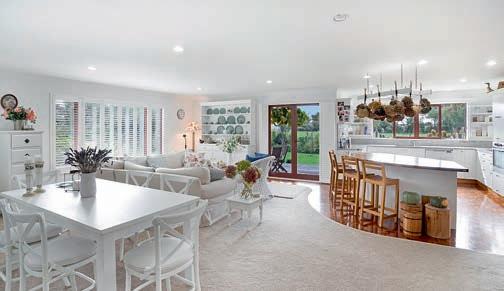 Open plan kitchen/dining and a large living room that is flooded with natural light and stunning views of the eastern hills.