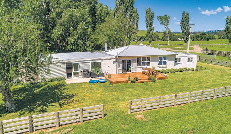 Sitting proudly on its elevated site in an established setting and commanding fantastic rural views of the surrounding majestic typical NZ farmland, this appealing older style home on 4 ha (approx) is the perfect get away lifestyle property. Recent renovations to some of the home have been completed setting the standard for its new owner to continue and personalise to their own style. The open plan kitchen, dining and family areas are perfect for family living and the bedrooms and modernized bathroom are all accessed by a central hallway. The home is heated by a ducted heating system and log burner, ensuring all rooms are at an even temperature throughout those chilly months. French doors access the North and East facing decks from multiple rooms taking in the true country feel this home offers. With an attached carport and a separate three bay shed, there is ample room for those extra vehicles and workshop space. And for those fitness enthusiasts, there is even your own a gym! Careful planning in fencing the paddocks and developing the central race which lead to the new stock yards and dual access for heavy vehicles has meant running this lifestyle property is a breeze.