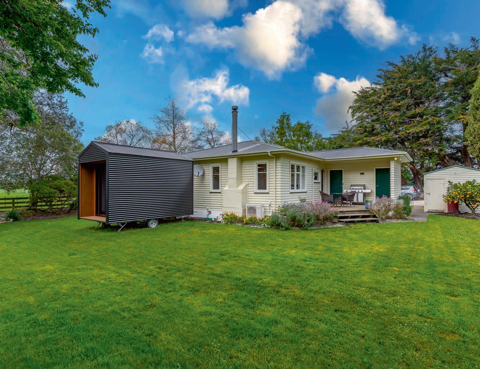 The single-car garage with a small workshop is a great space to be outside tinkering away. What sits amongst the tranquil surroundings and can only be described as peaceful, fun and private is a handcrafted wood-fired sauna.