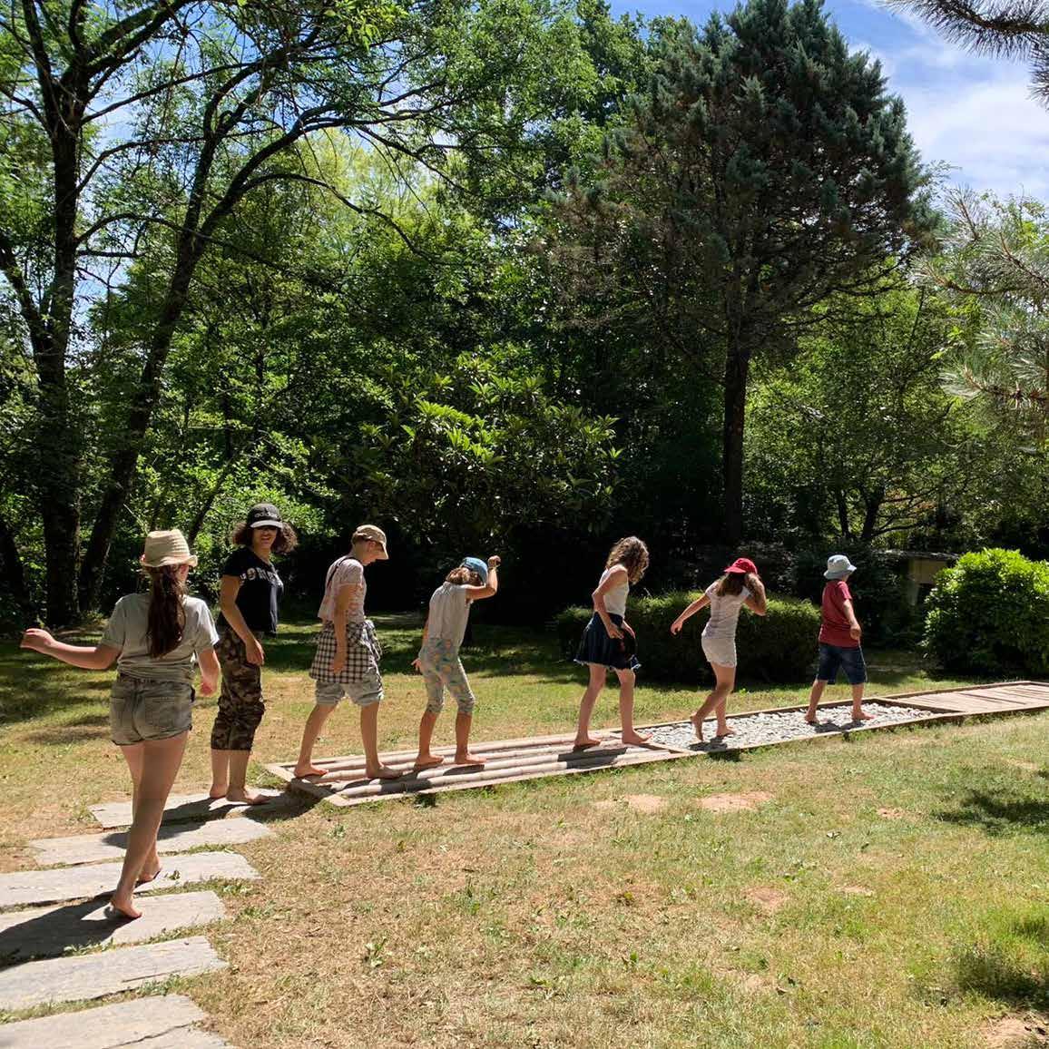Lors d’une séance d’initiation à l’équitation, tu pourras découvrir le monde des poneys dans le centre équestre qui se trouve juste à côté du centre. Celles et ceux qui le souhaitent pourront également partir à la découverte des jardins de Brocéliande, qui se trouvent sur la commune, pour profiter du parcours sensoriel pieds-nus ou encore observer les animaux et les végétaux.