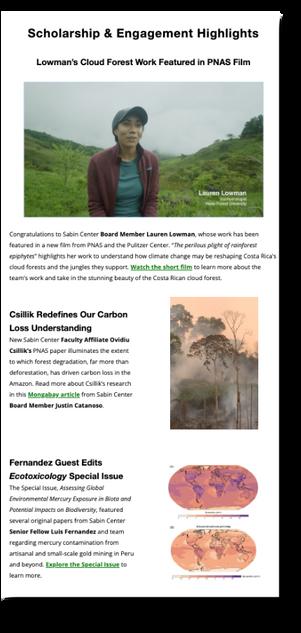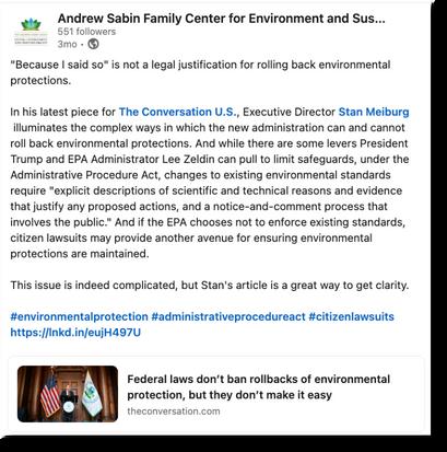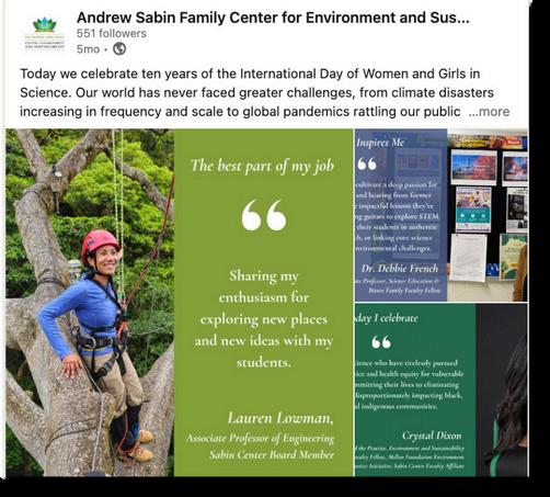 ⏵ Increased Visibility. We’ve leveraged our growing LinkedIn presence to highlight the research achievements of the Center and its programs as well as the achievements and expertise of our Faculty Affiliates. For example, sharing publication and media coverage of mercury poisoning research from CINCIA, featuring faculty affiliates in the media like Board Member Lauren Lowman’s explainers on wildfires, or highlighting the expertise of Faculty Affiliate Courtney Di Vittorio in a World Water Week post. We also highlight these accomplishments in our bimonthly newsletter, which is sent out to hundreds of contacts.
