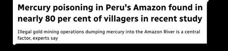 110. (2025, June 20). Mercury poisoning in Peru's Amazon found in nearly 80 per cent of villagers in recent study. CBC. https://www.cbc.ca/news/science/mercury-poisoning-goldmining-1.7566978