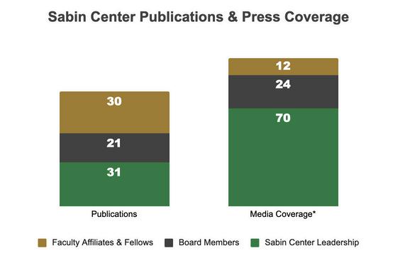 ⏵ Contribute to the University Environment and Sustainability Ecosystem. We look forward to learning more about the University’s next steps in harnessing the environment and sustainability ecosystem and believe that the Sabin Center will play an integral role in the ecosystem’s next chapter. As a proven catalyst for transdisciplinary research and engagement across the University’s schools, departments, and programs, we are wellpositioned to advance efforts to further integrate and amplify its efforts. Additionally, as the most external-facing part of the ecosystem, we have seized the opportunity to act as an ambassador for the University and all its stakeholders’ efforts in this space. The community response and feedback to our events to date underscore how essential this role is to achieving the University’s strategic goals of leadership and community partnership. We believe these strengths will only grow in a more holistic approach moving forward.