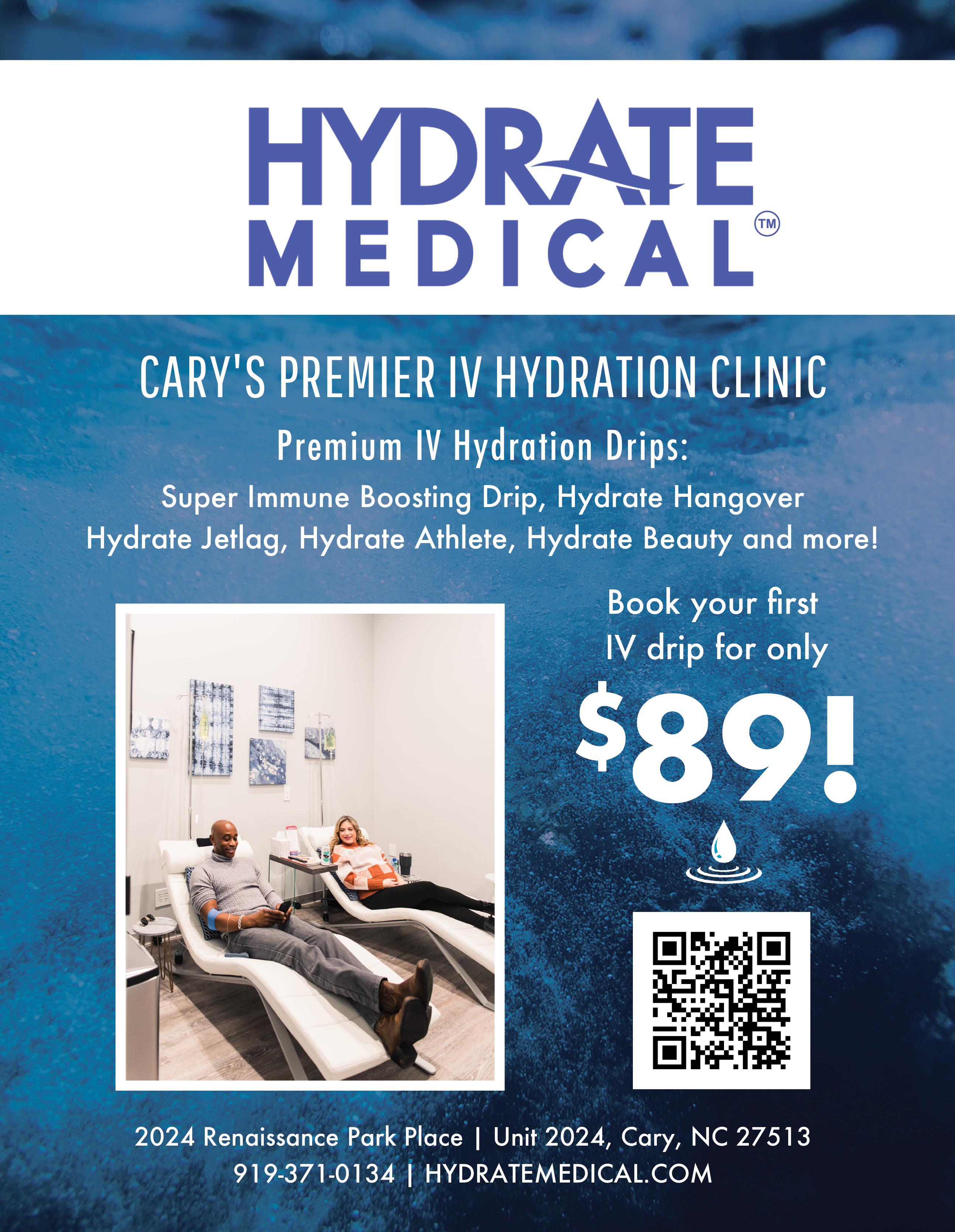 “I WANT TO THANK YOU SO MUCH FOR THE EXCELLENT ARTICLE FEATURING HYDRATE MEDICAL IN WAKE LIVING! I, AS WELL AS THE HYDRATE MEDICAL TEAM, APPRECIATE IT MORE THAN YOU'LL EVER KNOW!”