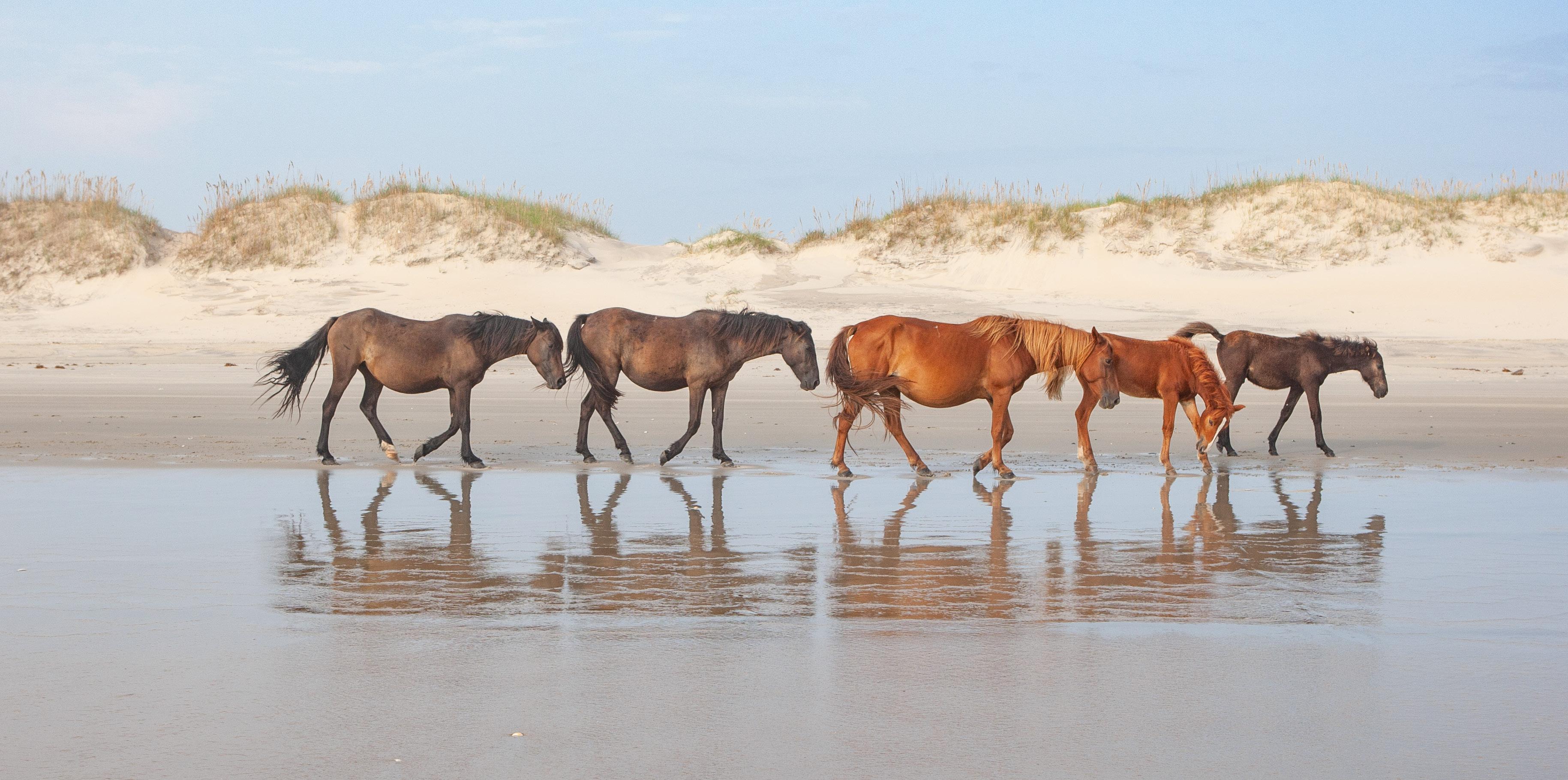 Just North of where paved roads come to an end on the Outer Banks is where the official state horse of North Carolina roam. The legendary Corolla wild horses have been calling our beaches home for over 400 years.