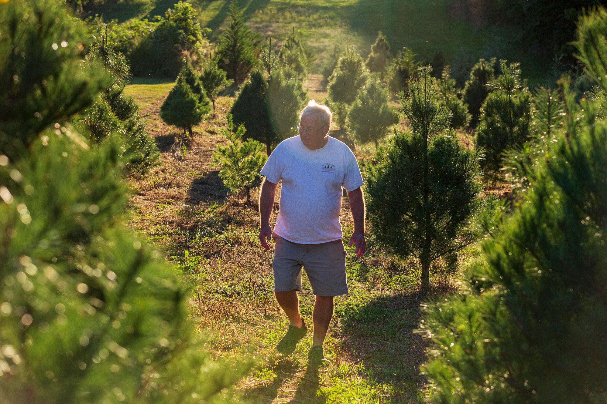 THE BOYCE FAMILY DECORATES A WHITE PINE TREE ON THEIR 40-YEAR-OLD TREE FARM IN RALEIGH. PHOTO