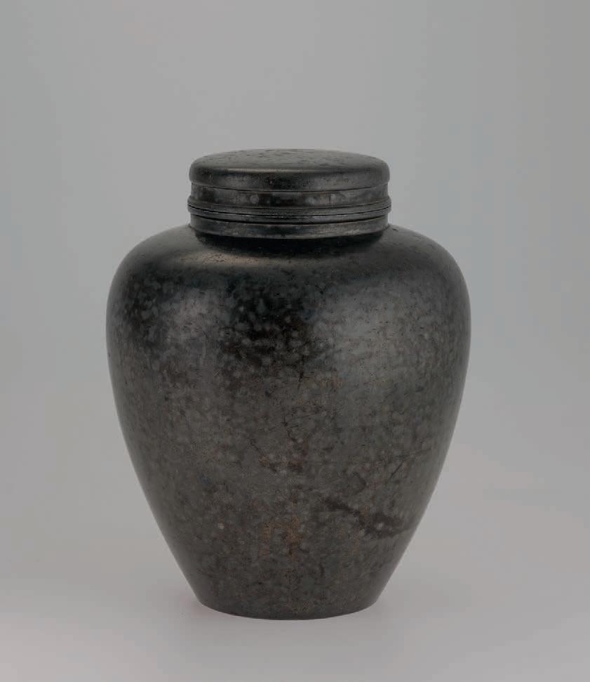 錫屋在銘 内塗金丸形茶壺 高22.5cm 木箱