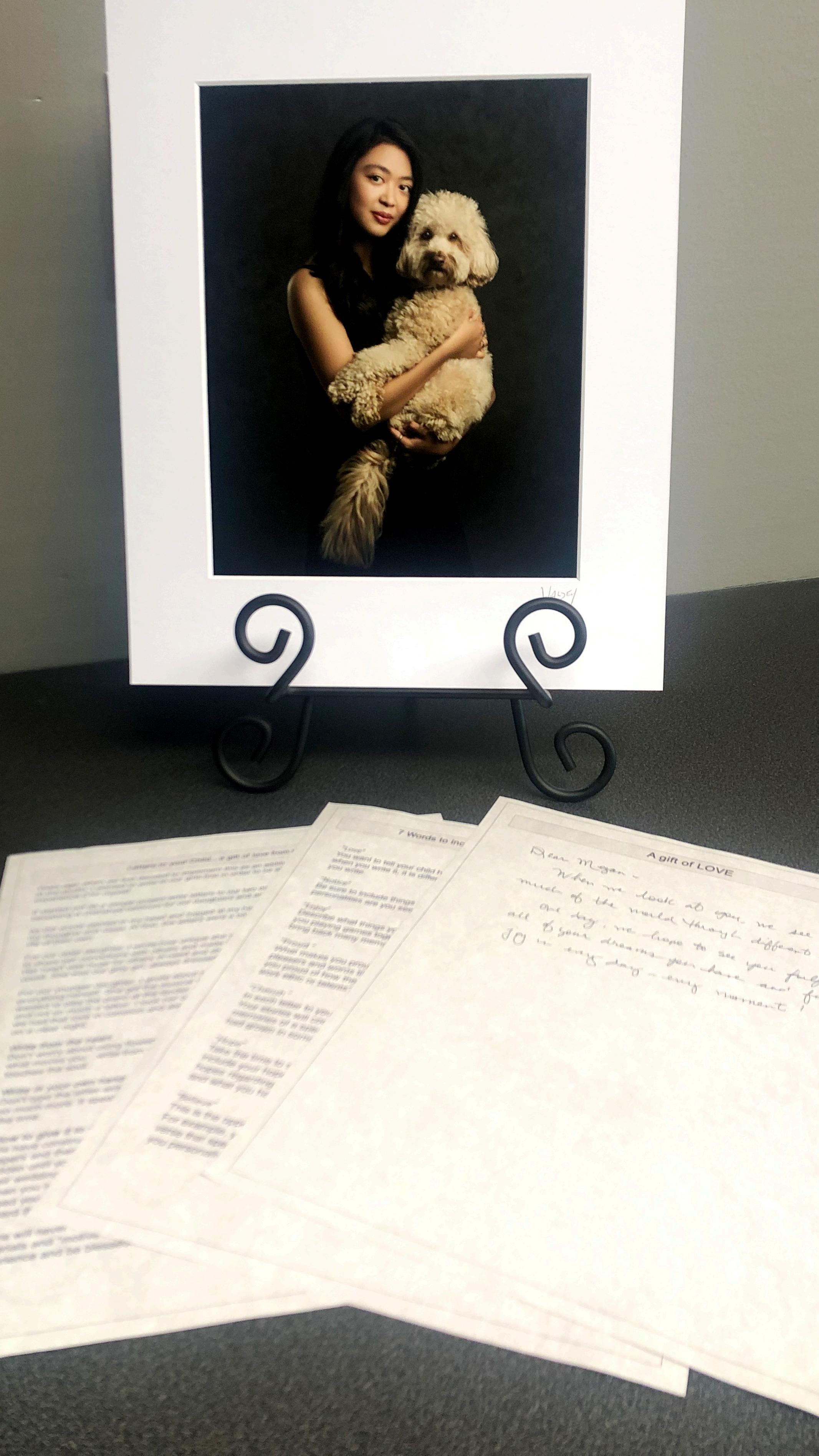 We believe that your words are vital as well. That’s why we invite our families to tuck a personal note behind the portrait —a handwritten message that we attach to the back of your framed portrait.