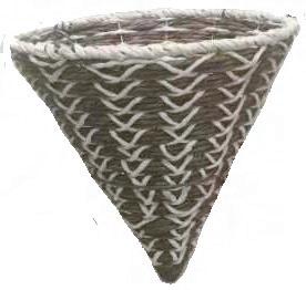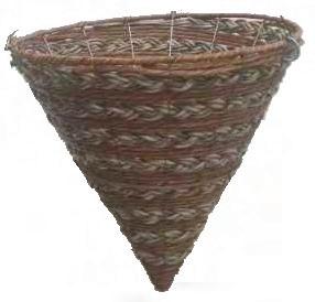 Resin, rattan cones. Each sold with sturdy wire hanger and planting (display) stand.