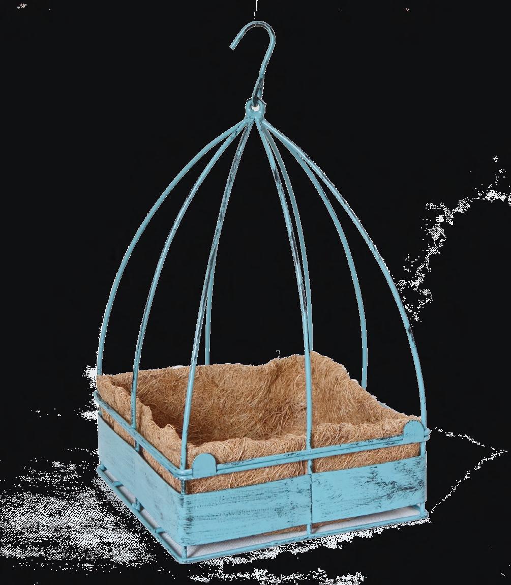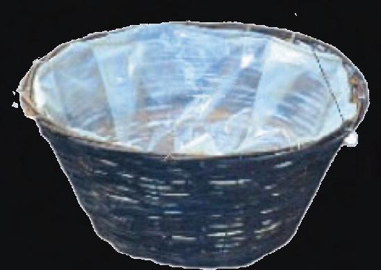 Decorative flat bottom hanging baskets in an array of material choices to satisfy every taste. Each is poly lined and includes heavy duty wire hanger.