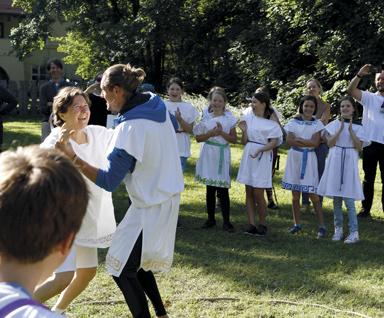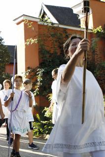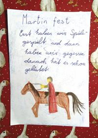 Bereits in der Hochzeit der Kindheit (mit dem zwölften Lebensjahr beginnend) sollen rhythmischer Teil und Erzählteil keimhaft anlegen und vorbereiten, was in der Oberstufe gleichsam als Ernte auf einer anderen Ebene eingefahren und in das Bewusstsein gehoben werden darf. Ich möchte das den großen pädagogischen Dreischritt nennen: So werden beispielsweise die schon im Vorschulalter gemüthaft angelegten Bilder des Michaelskampfes, die aus der