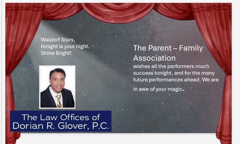 Thank you to the 23 talented youth performers and their supportive and affirming families. Deepest gratitude to Jose Almanzar, Gary Carle, Evelyn Escobar, Andrew Fallu, Aviva Gill, Andrea Gomez, Jeena Henao, Alexi Kritas, Jeanenne LaBella, Bianca LeRoux, Loretta Mignone, Ann Mulvehill, Nina Mullane, Gerald Owens, Kelly O’Halogan, Kevin Padilla, Victor Rivera, Franklin Rankin, Mauricio Saravia, Andrea Schimansky, Karen Schooley, Paul Schnabel, Dan Strauss, Martin Somers, Deirdre Somers, Manny Vega, and PFA—as well as all of our dedicated parent reps. Your time, talent, and unwavering support made this experience extraordinary.