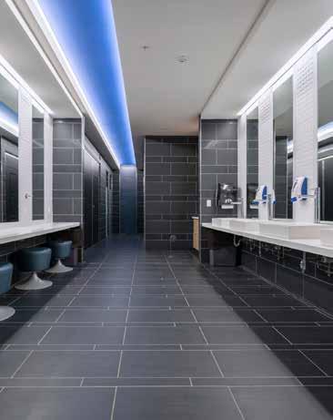 We created spaces that inspire players to rally around their cause and foster the kind of team spirit that brings home championships. A spacious team lounge, a dramatic locker room, an on-site training room, and a spa-like shower experience all add up to an environment that truly supports the players.