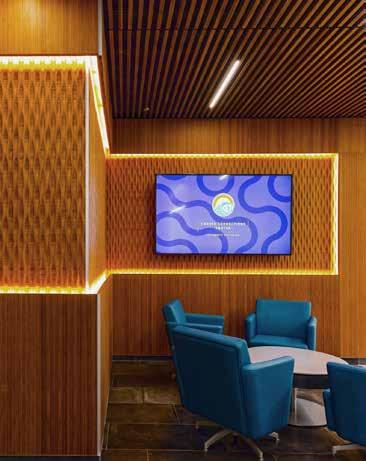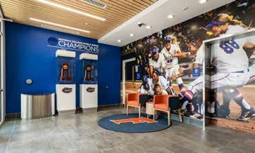 Careful attention to the recruiting path drove the design to offer a multitude of choices and celebrate the team's accomplishments at every turn. Graphics and displays highlight team spirit along with their history and star players, inviting all who enter to be part of a championship experience.