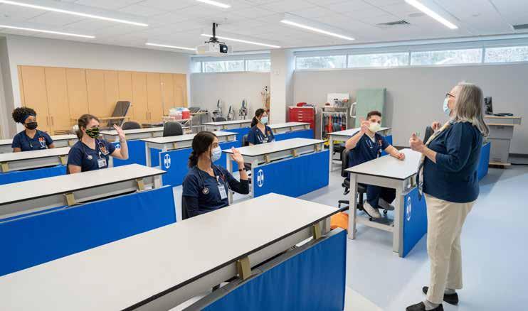 The thoughtful renovation plan not only meets the current program's needs, but also offers flexible design solutions to accommodate artificial intelligence and virtual reality learning adaptations in the future. The new space includes classrooms, patient and procedure simulation rooms, control room simulation, a crossdisciplinary innovation studio, skills lab, and equipment storage.