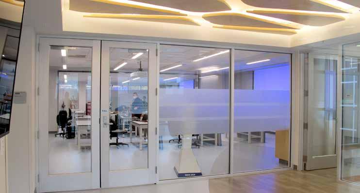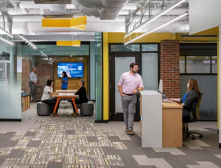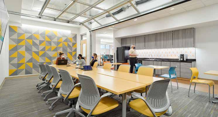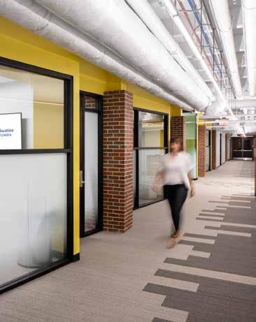 Private offices feature glass walls to encourage interaction between faculty, staff, and students.