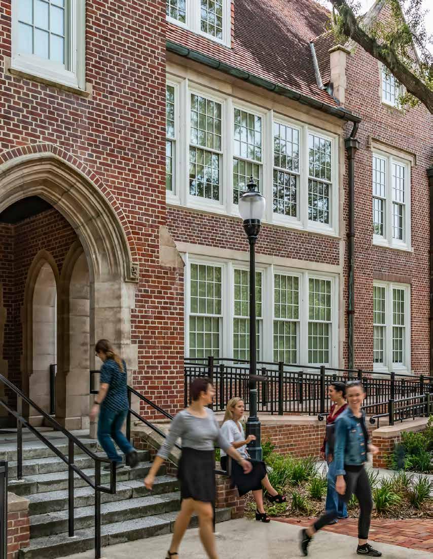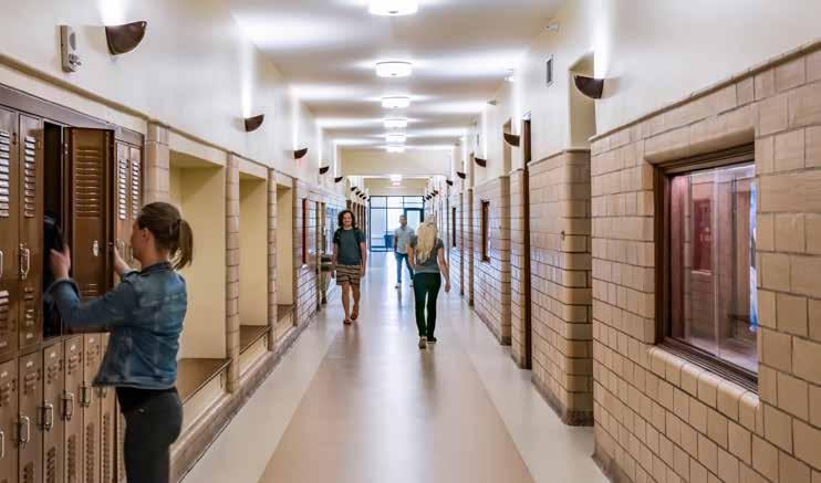 The past informs present-day design. Our design team was charged with rehabilitating historic Norman Hall to support 21st-century learning technologies while preserving the Hall's "collegiate Gothic" character. To give the facility a new life, we took cues from photographs of building interiors from the 1950s. We began by prioritizing changes that would alter or remove interior structures to let in natural light, facilitate movement and create gathering spaces. Our design team activated the West entrance, recreating the entry's original vestibule as a gesture to the past that exudes welcome.