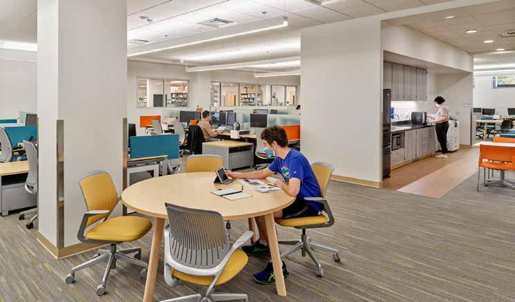 Staff and students require a combination of open and private spaces for both individual and group-oriented work. While open areas build community, bolster trust, and nurture creativity, areas with more privacy meet the needs of analytical task-doing and focused meetings.