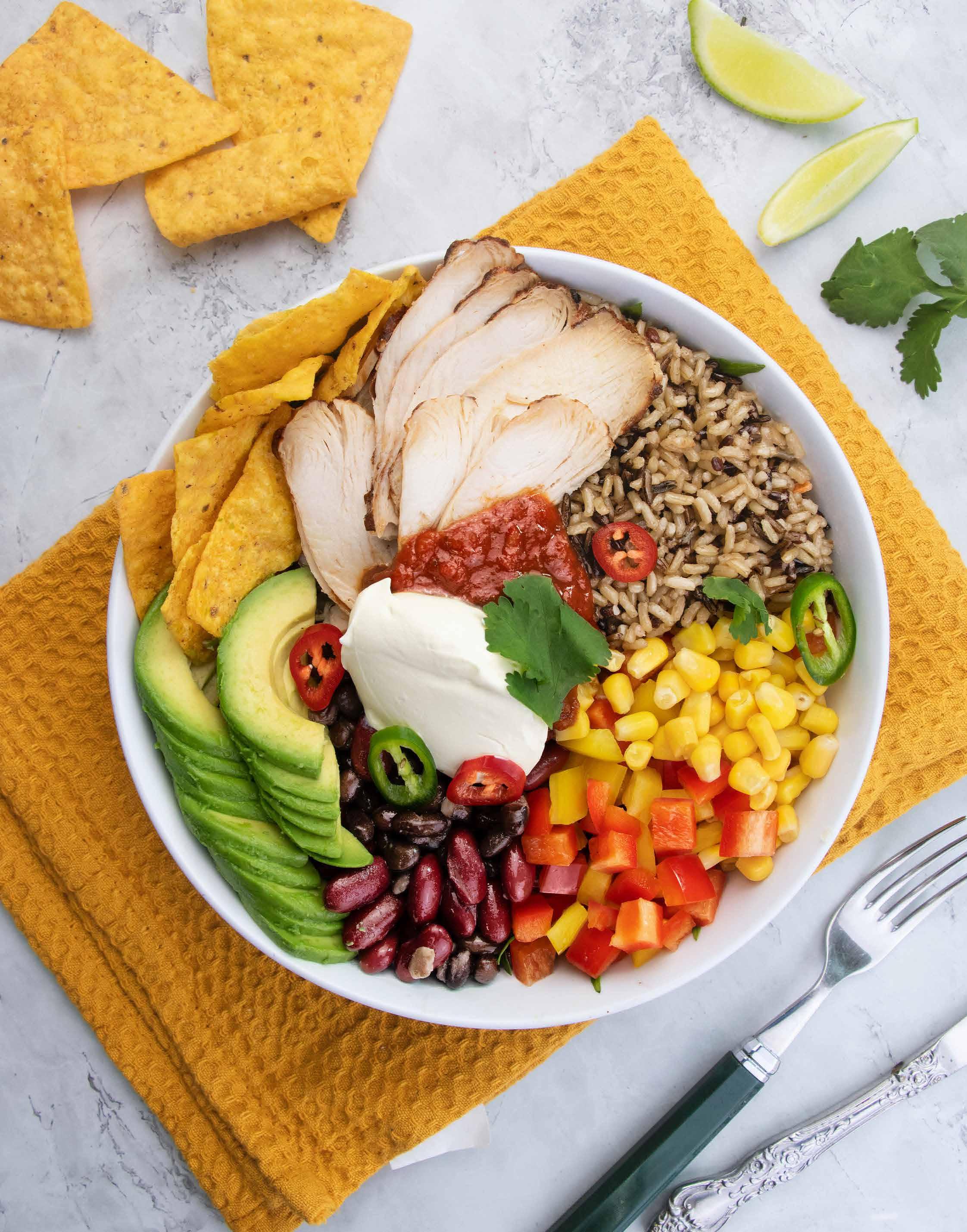 Enjoy your healthy delicious and customizable Chicken Burrito Bowl!