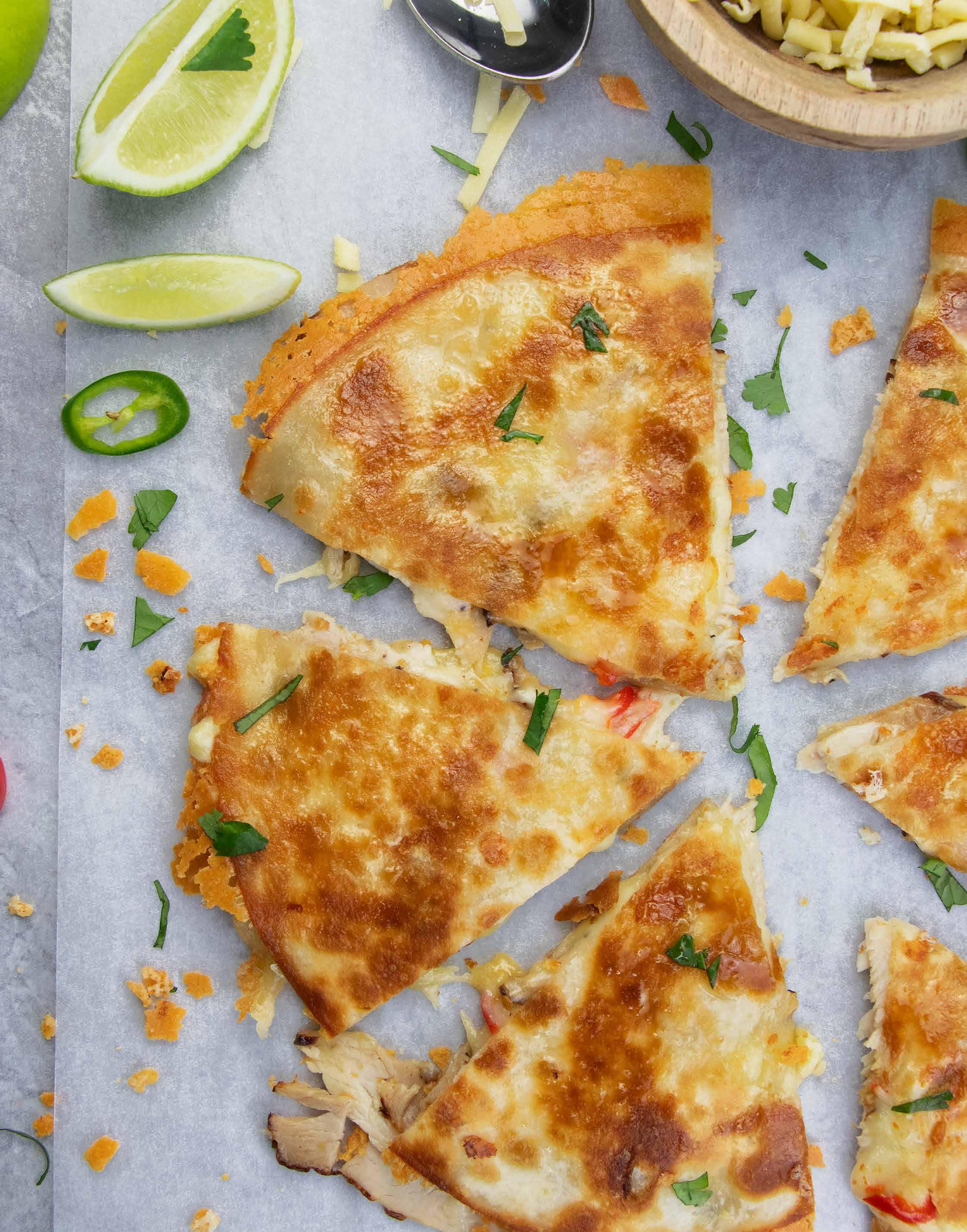 4. Remove from the pan, let it sit for a minute, then slice into wedges. Serve with your favourite dips and a squeeze of lime.