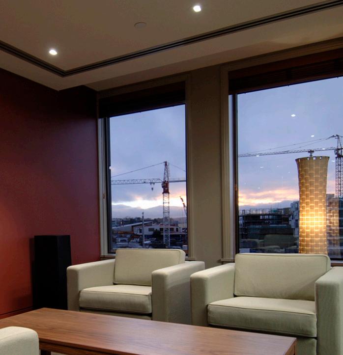 The maritime office floor surveys across the tidal manmade Viaduct harbour, at boat mast level. Promenade lamps parade the view out to the harbour and beyond. This new office is international class, warm and welcoming realm between the boat and home , ‘club’ to entertain the esteemed work player.
