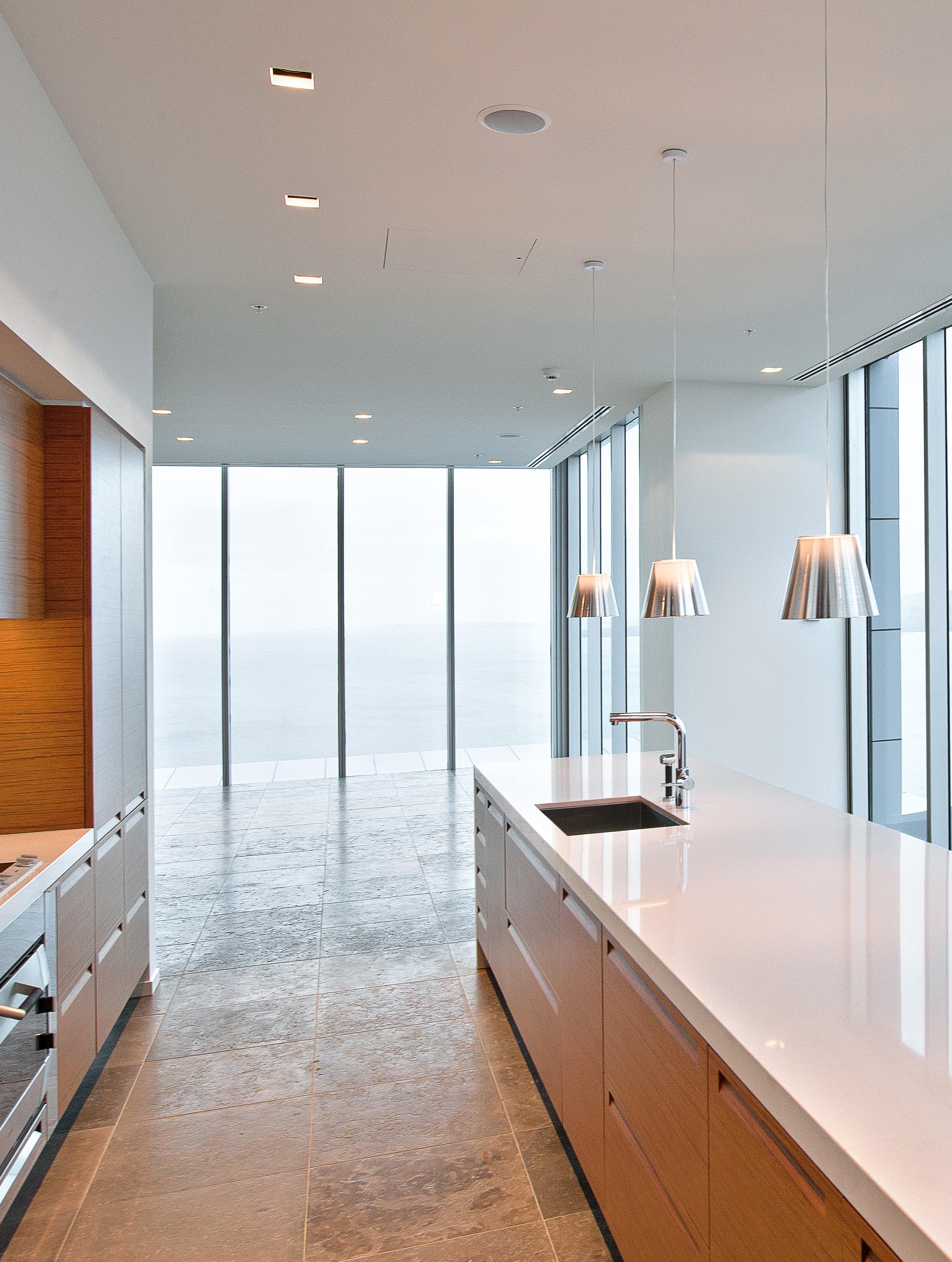 Standing at over 140m high in total with 30 stories the Sentinel is New Zealand’s tallest all apartment building. Floor to ceiling glazing affords outstanding grandstand views of the Hauraki Gulf coastline North and East and Auckland City to the South. The simple square building shape has a highly efficient served core,