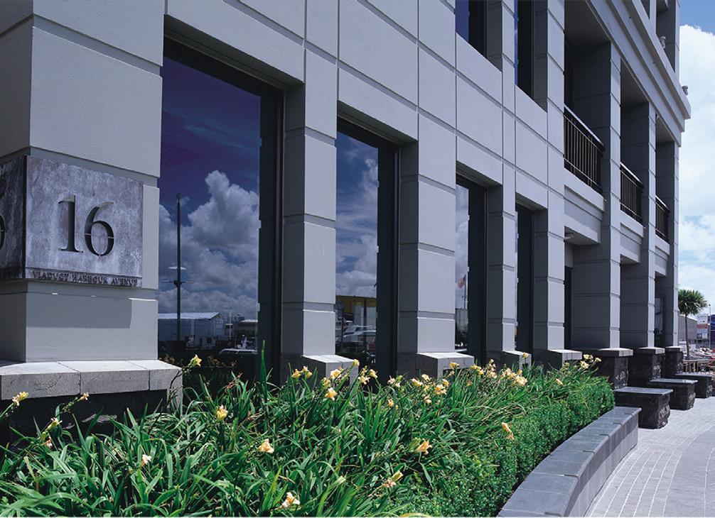 Wide expansive views over the port of Auckland and Waitemata Harbour have given strong horizontal balcony elements to the north elevation while urban city views to the south have given smaller horizontal deck elements combined with strong vertical elements echoing the rhythm of the cityscape.
